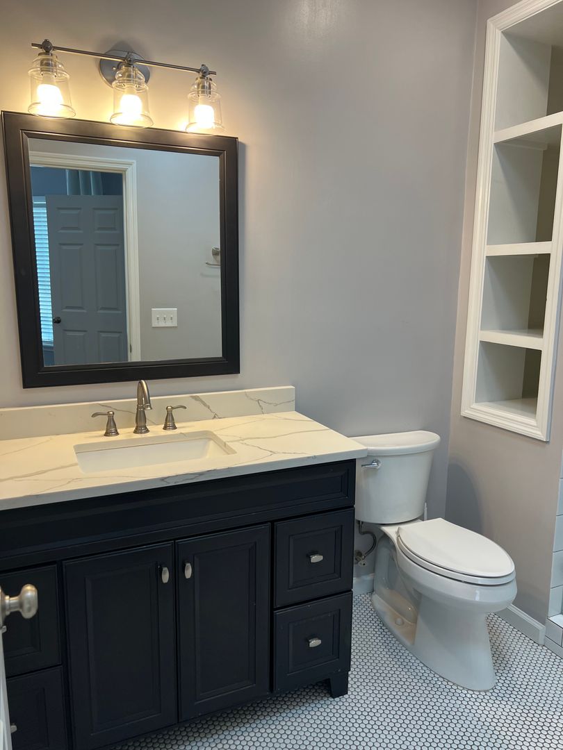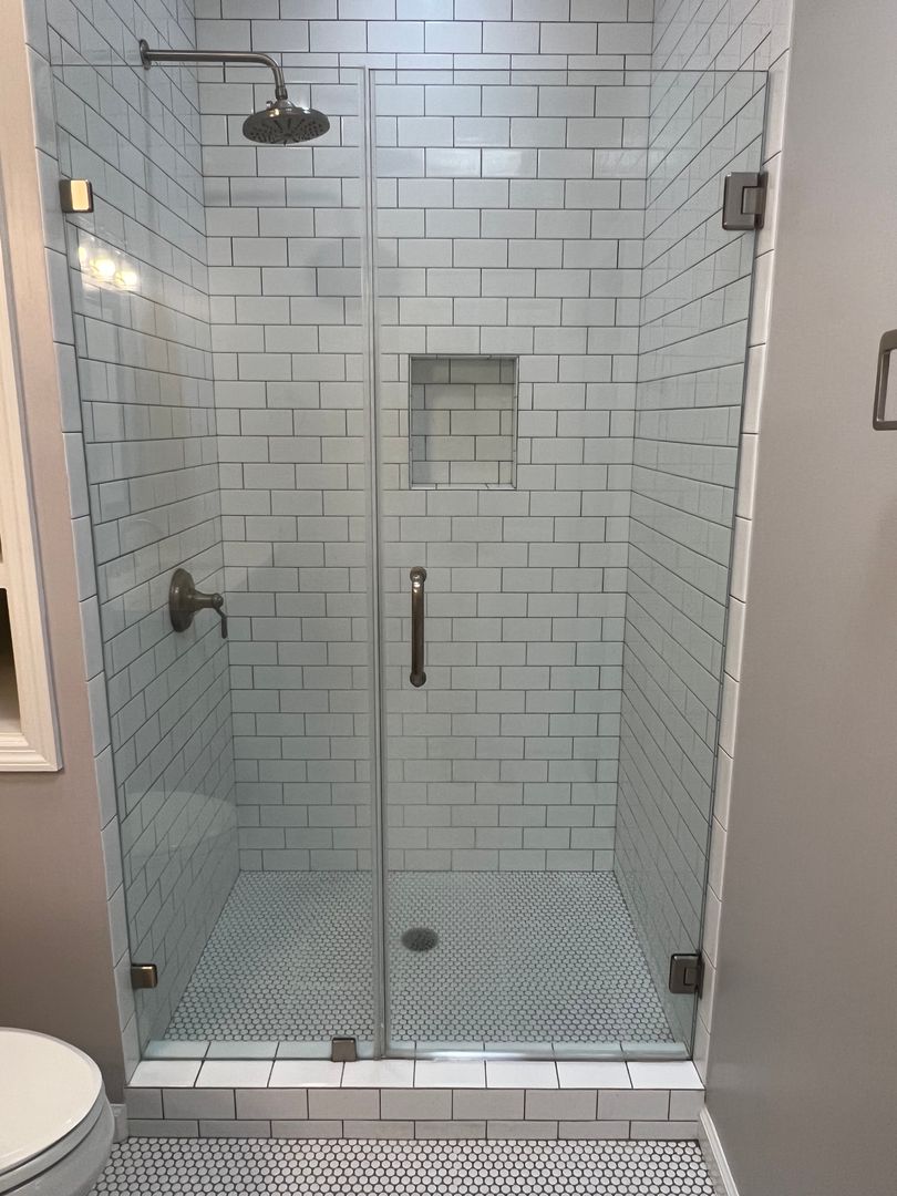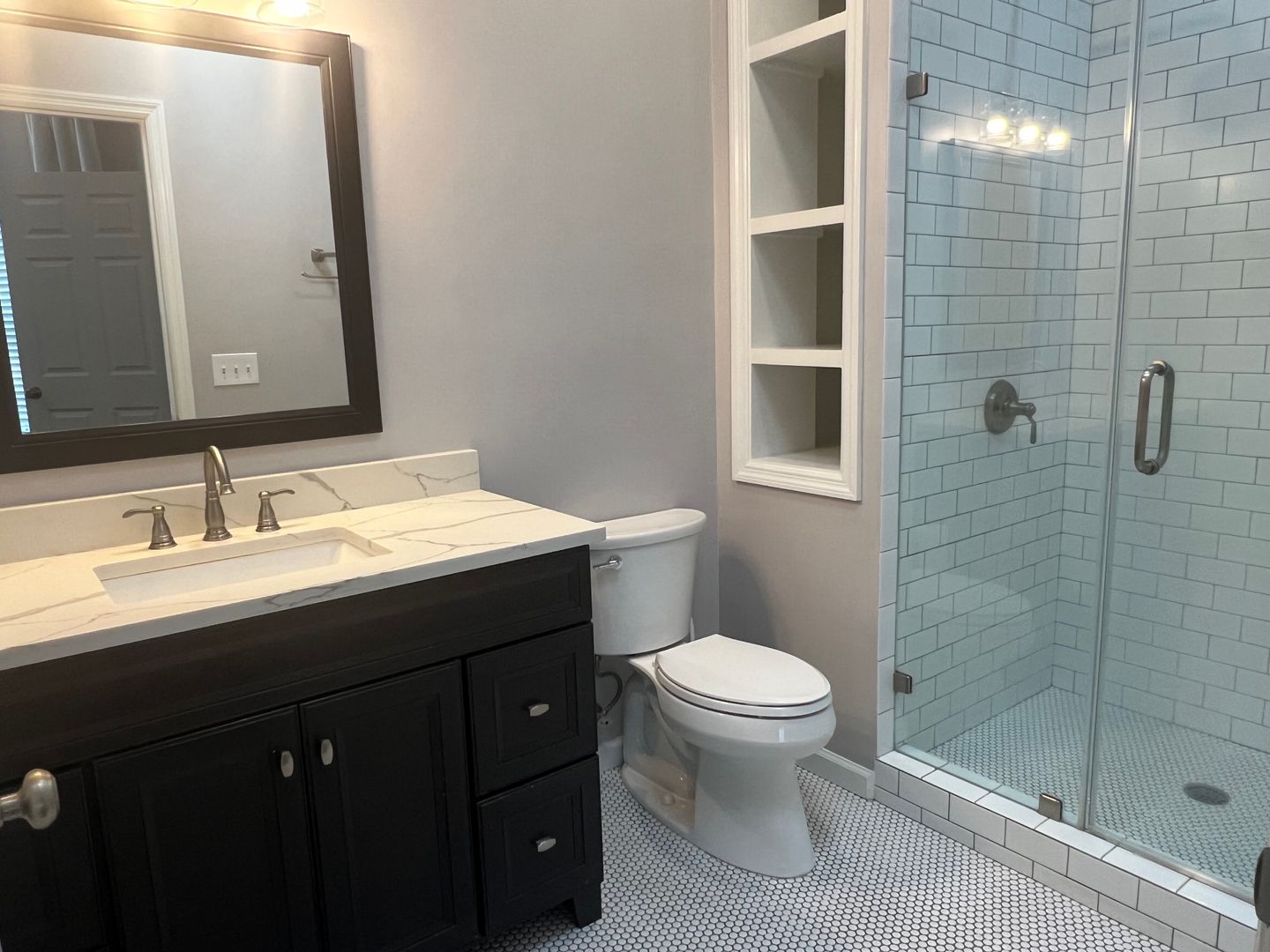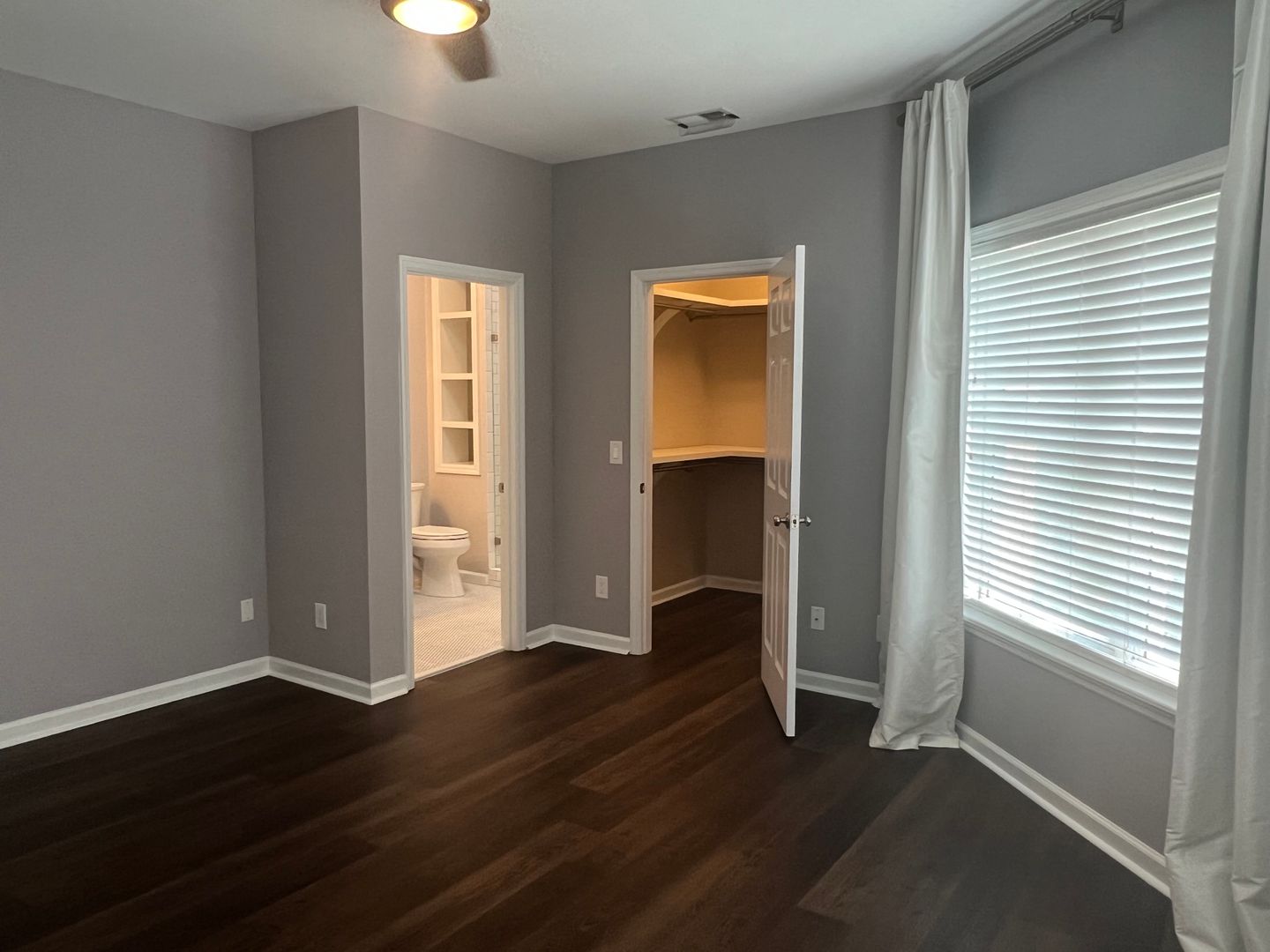 Upstairs you will find all three bedrooms. The primary suite has ample natural light, updated fan/light, walk-in closet with built-ins, and an updated primary bath with a tiled walk-in shower. The two guest bedrooms share a hallway bath with a tub/shower combination.