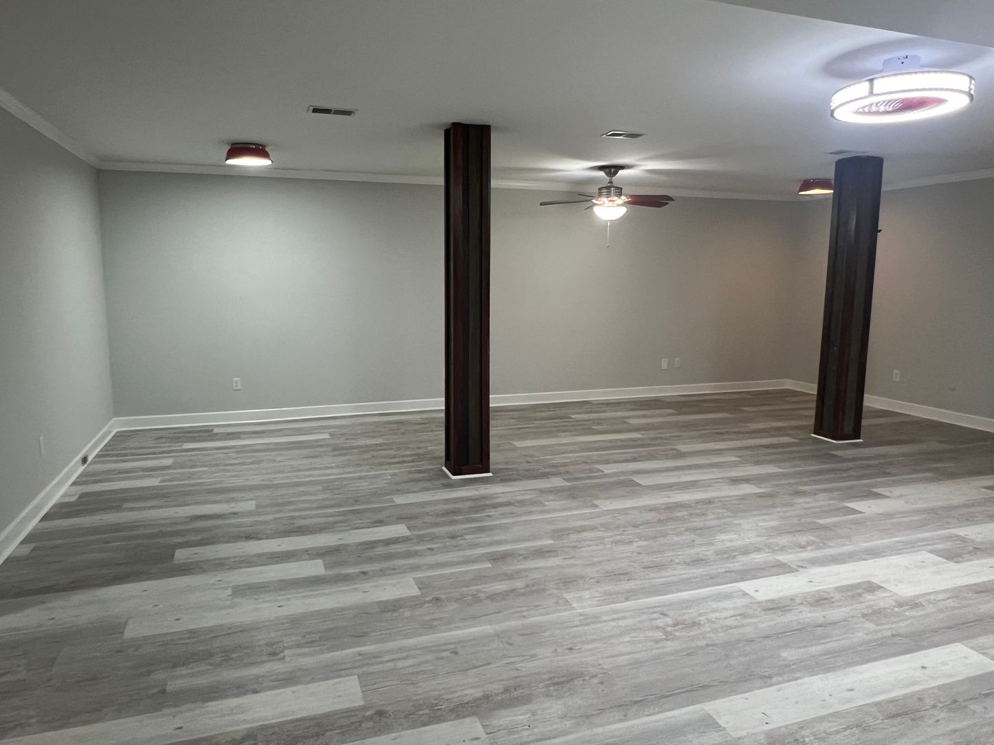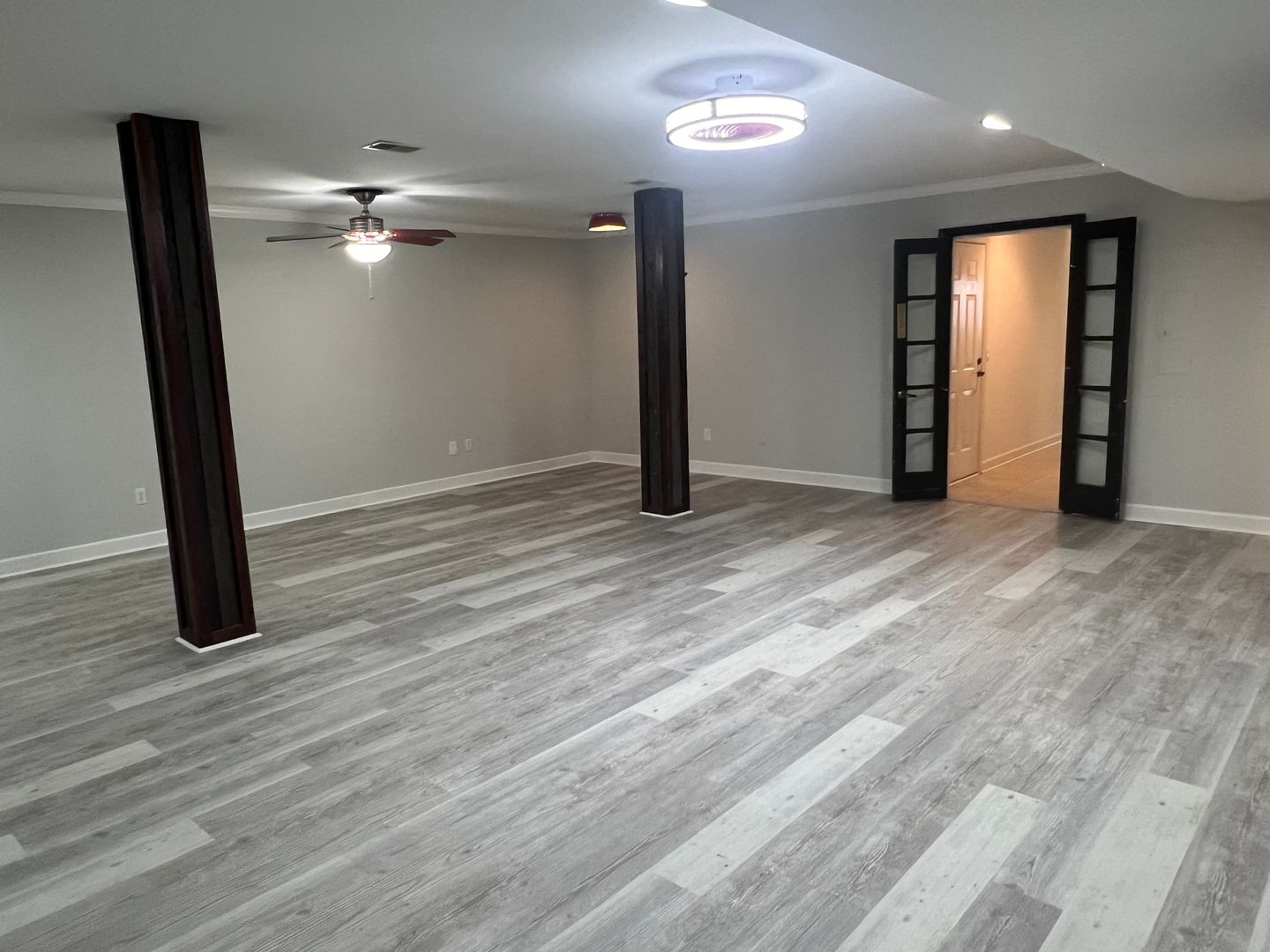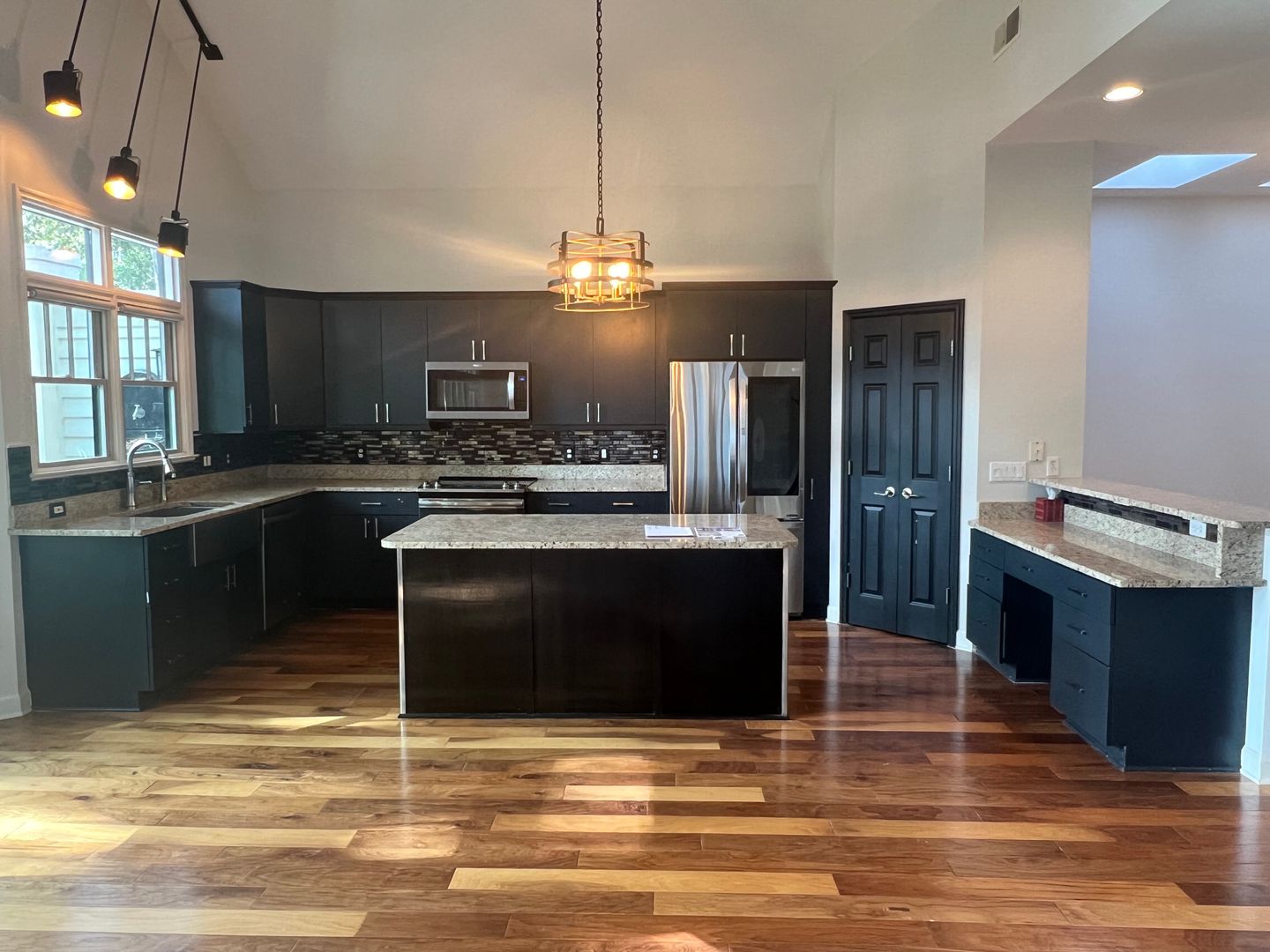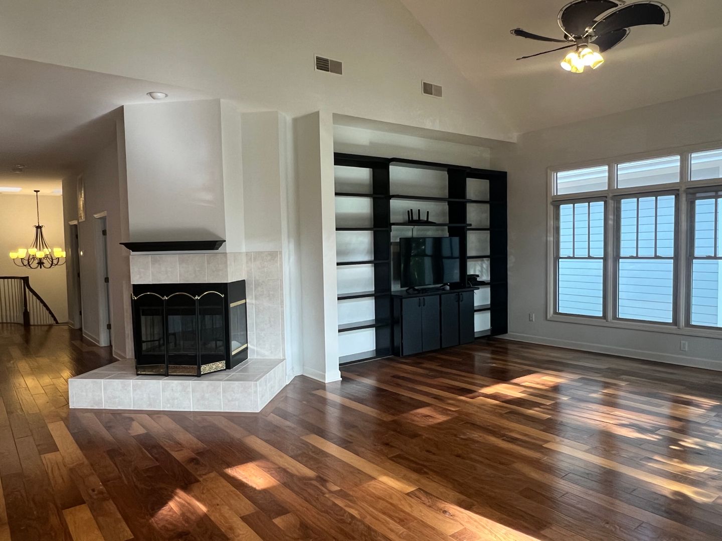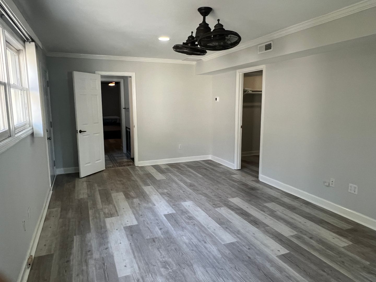 Large home with multiple living spaces, spacious bedrooms, updated kitchen and a lovely stoned patio backyard. Upon entering this home you will find two bedrooms downstairs which share a bathroom, along with a large multi-purpose room which could be used as a bonus room area, home offices, entertainment room, etc. Upstairs you will find the master bedroom suite, a guest bedroom with access to a bathroom, laundry room with a full size washer and dryer and an open concept dining/living/kitchen area. The kitchen includes granite countertops, stainless appliances, pantry, large island, and a workspace area. The living room includes built-ins and a lot of windows for great natural light. There are large closets and some storage space in the home as well. Enjoy use of the rear balcony overlooking the beautiful stone patio below. There are 3 new TV's in the home that will remain, but will not be warranted, repaired or replaced by owner during occupancy. Otherwise the home is being offered unfurnished for a long-term lease.