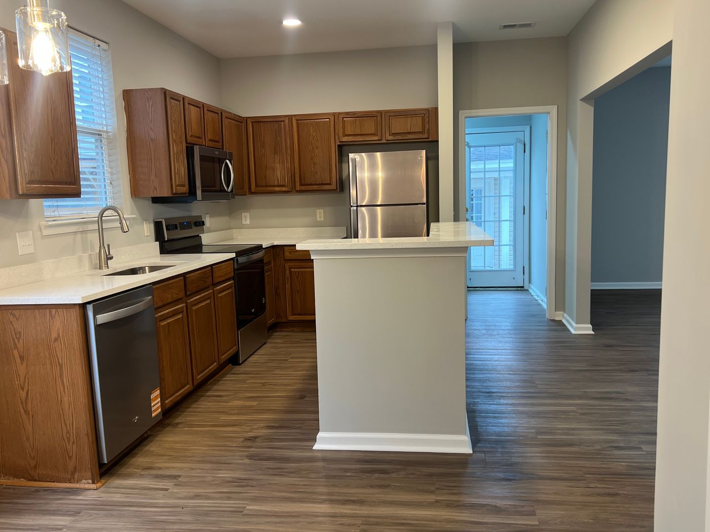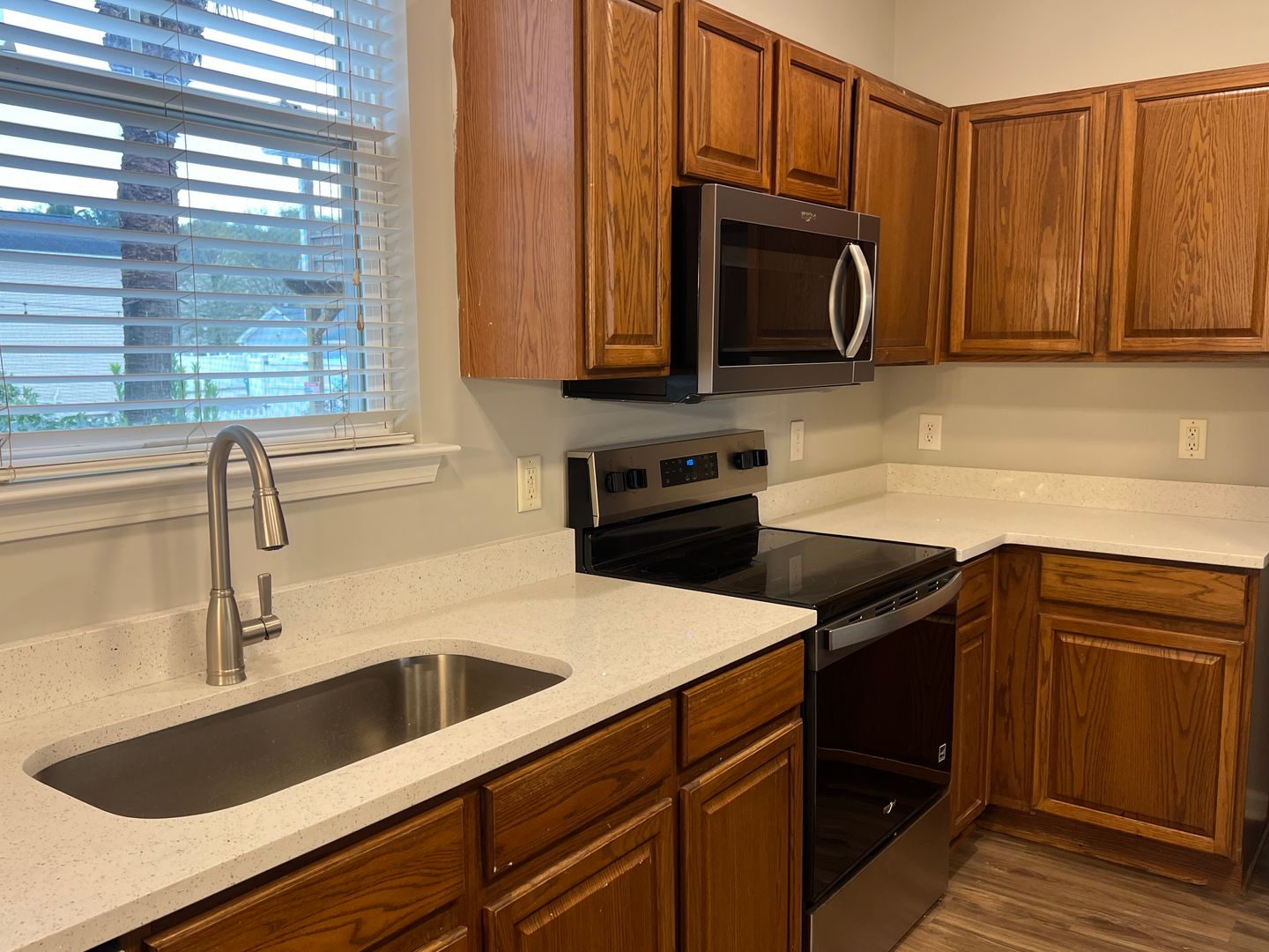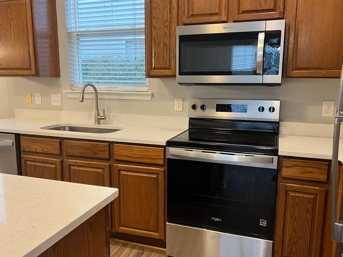 Kitchen features new refrigerator, stove, dishwasher and microwave. Features 2 car detached garage. Call for additional details. New modern light fixtures.