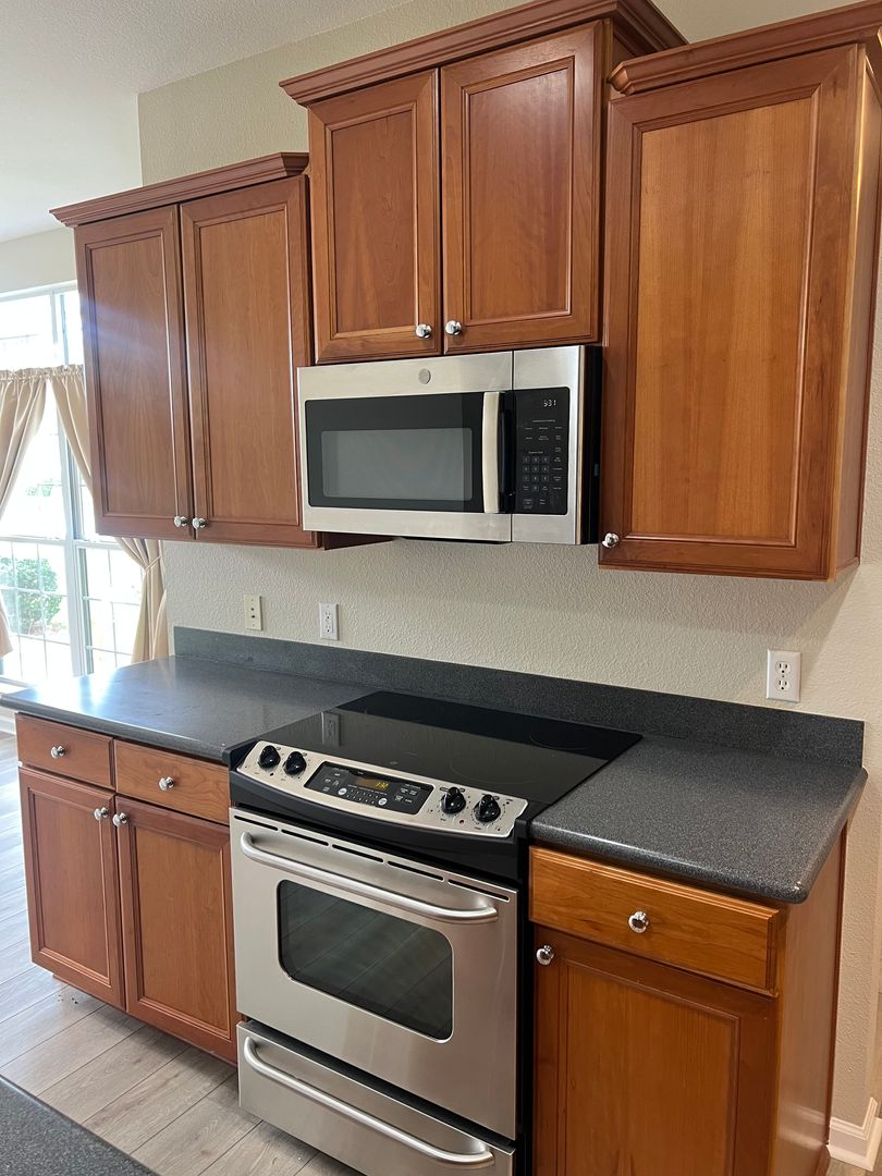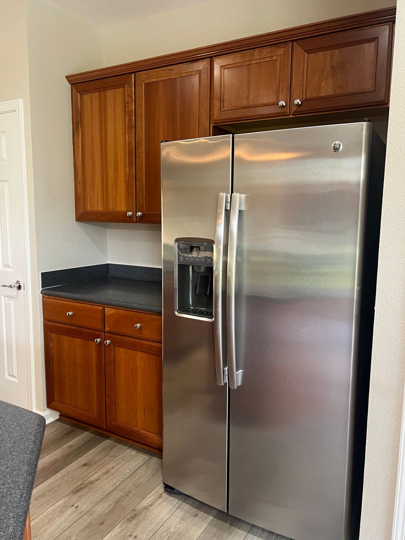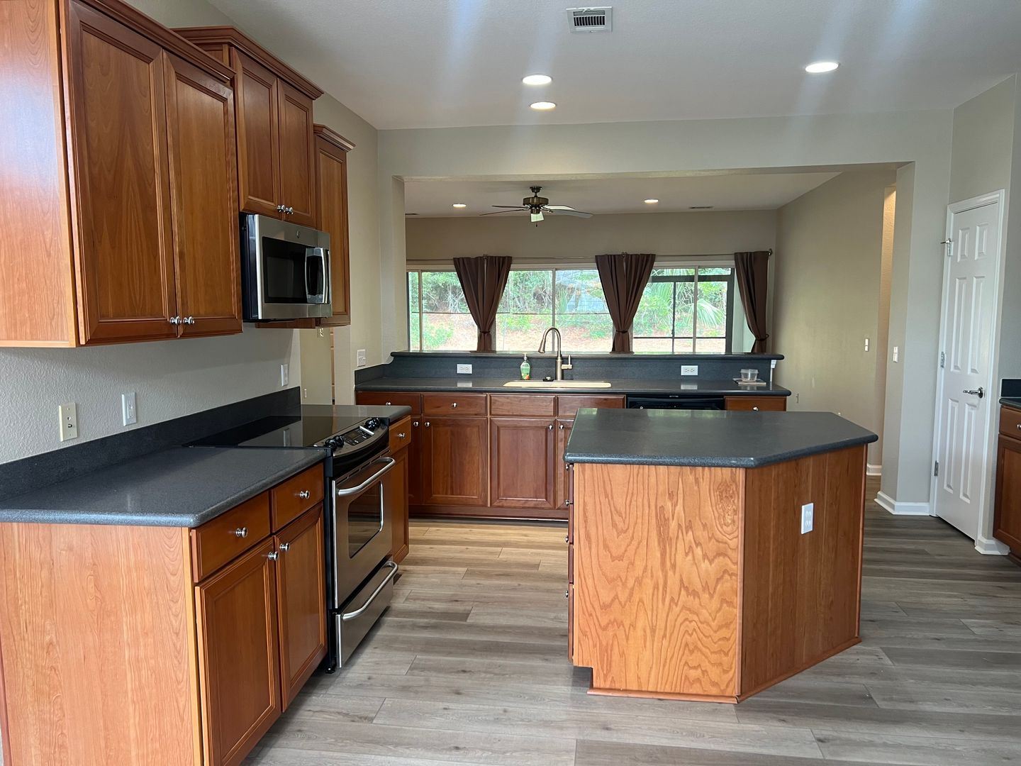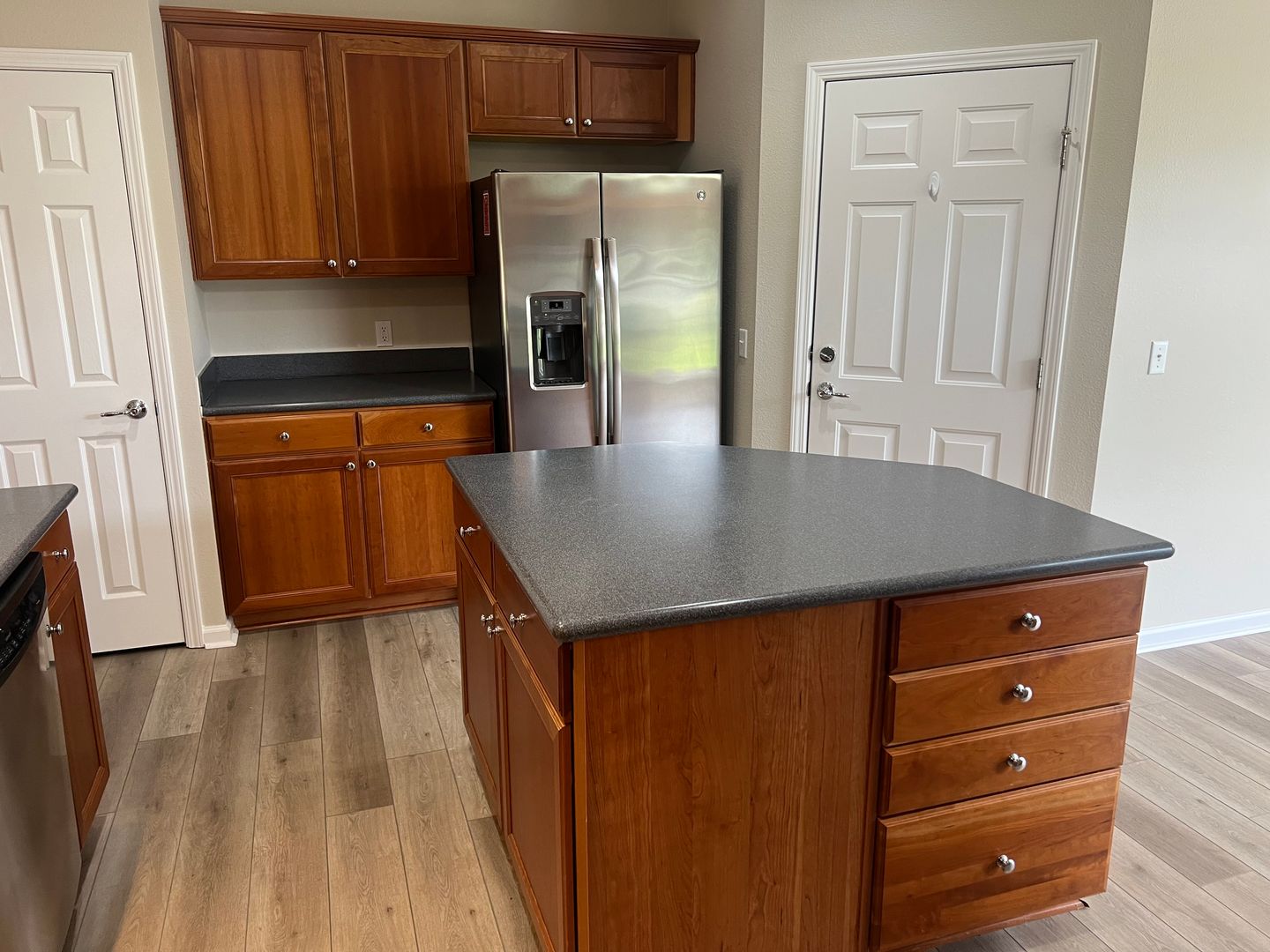 This home features a separate den/office, a spacious kitchen with eat-in area, granite countertops, an updated appliance package, and ample cabinet space. Enjoy low-maintenance vinyl plank flooring throughout the entire home.