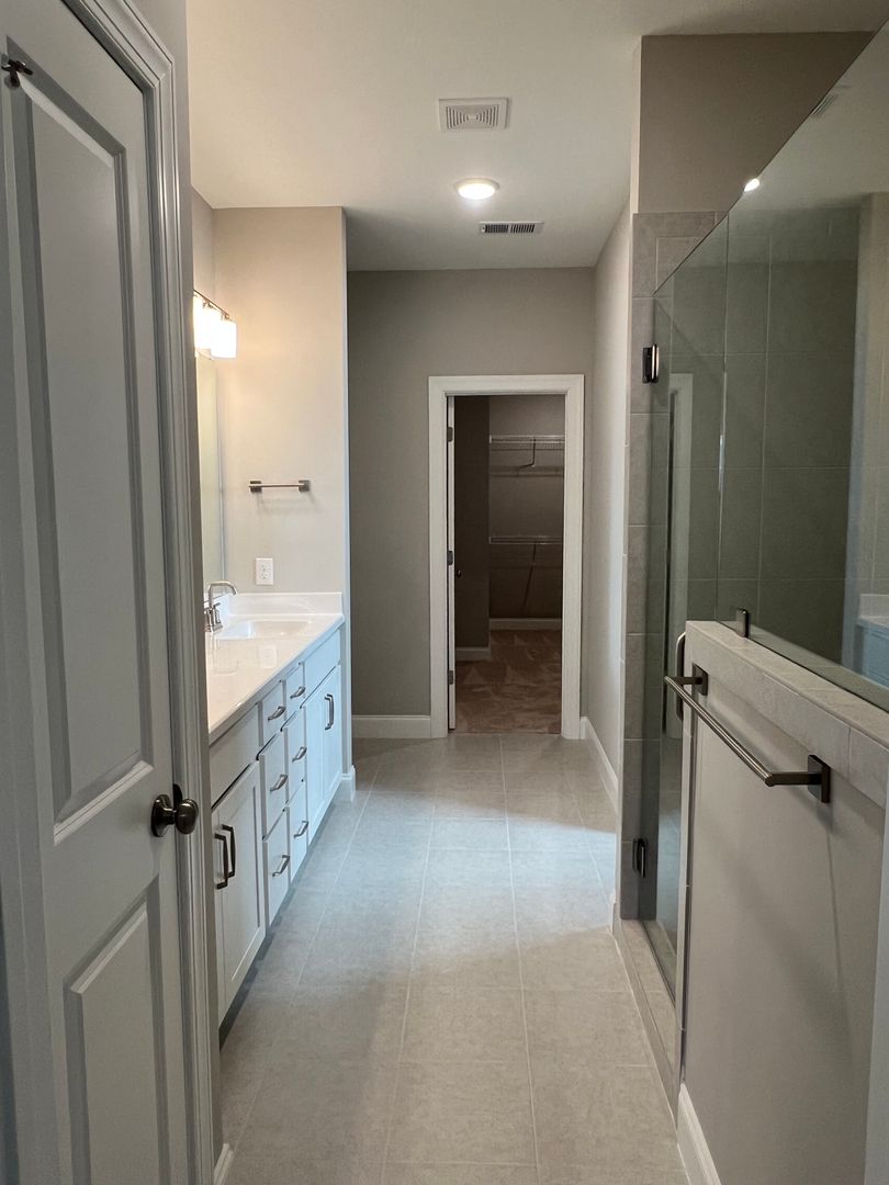 Upgrades include LVP flooring, crown molding, and a screened porch. The homeowner also added a screened-in front porch overlooking the woods, creating a private and relaxing sitting area.